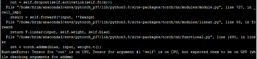 2. model은 GPU에 있어!아마 RNN 계열을 학습시킬 때 hidden state 변수를 선언하실 때 실수하는 경우가 많아서(제가) 이 에러를 종종 보곤 합니다.