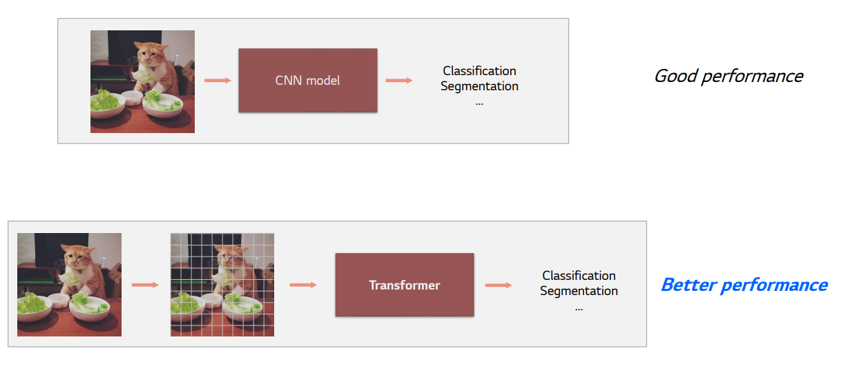 CNN기반(ex.ResNet)도 좋지만, ViT는 더 좋다! 다만, CNN 기반 model과는 입력을 사용하는 방법에서 조금 차이가 있습니다.
