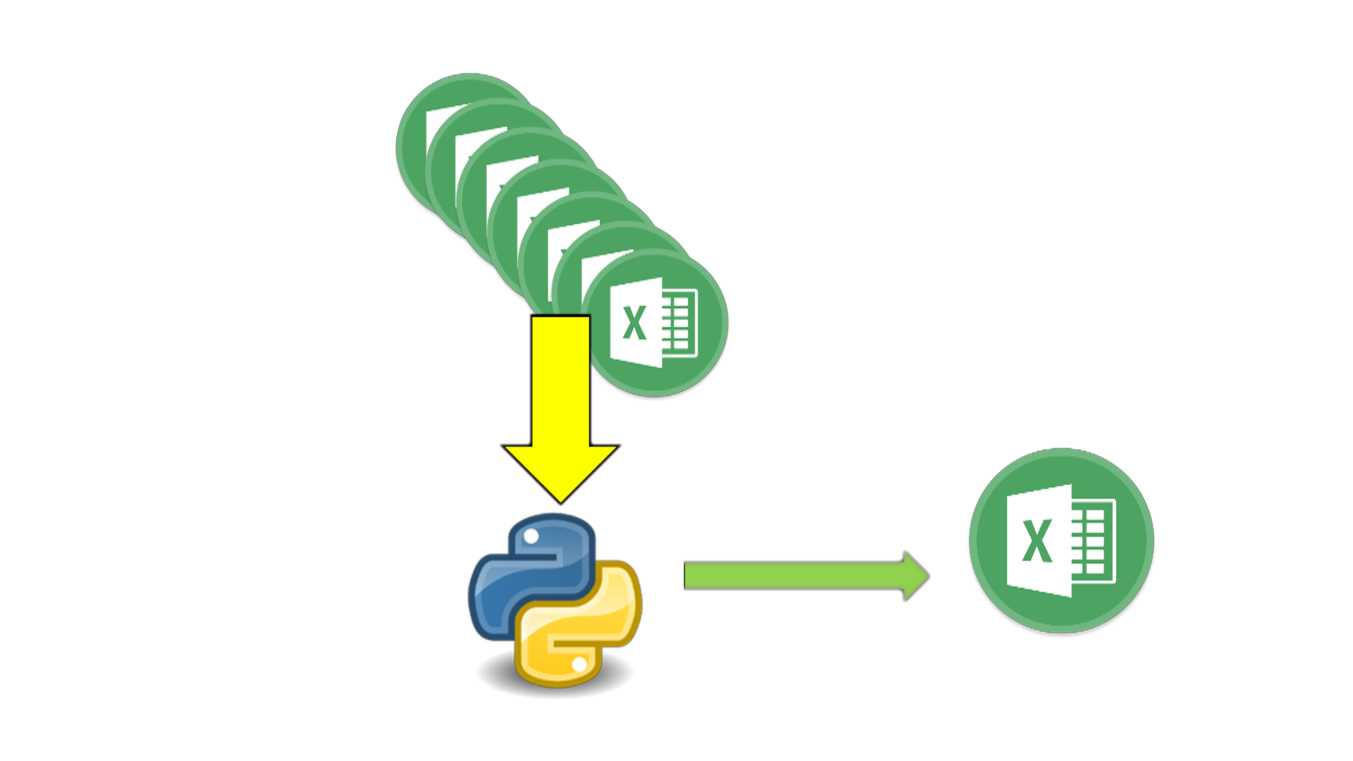 여러 엑셀 파일을 한 엑셀 파일로 취합 (w/ python) import openpyxl data = [] for i in range(1, 6+1): filename = "2021/20210{}.xlsx".format(i) b = openpyxl.load_workbook(filename) bs = b["Sheet"] j=3 while True: data.append( [ bs["B{}".format(j)].value, bs["C{}".format(j)].value, bs["D{}".format(j)].value, bs["E{}".format(j)].value ] ) j = j+1 if bs["B{}".format(j)].value == None: break print(data) wb = openpyxl.Workbook() wb.create_sheet("01-06") wb["01-06"]["B2"] = "판매코드" wb["01-06"]["C2"] = "지점" wb["01-06"]["D2"] = "종류" wb["01-06"]["E2"] = "가격" for i in range(len(data)): wb["01-06"]["B{}".format(i+3)] = data[i][0] wb["01-06"]["C{}".format(i+3)] = data[i][1] wb["01-06"]["D{}".format(i+3)] = data[i][2] wb["01-06"]["E{}".format(i+3)] = data[i][3] wb.save("상반기.xlsx")(취합하는 코드와 데이터 파일은 https://github.com/CodingVillainKor/AccelExcel 에서 확인하실 수 있습니다.)
